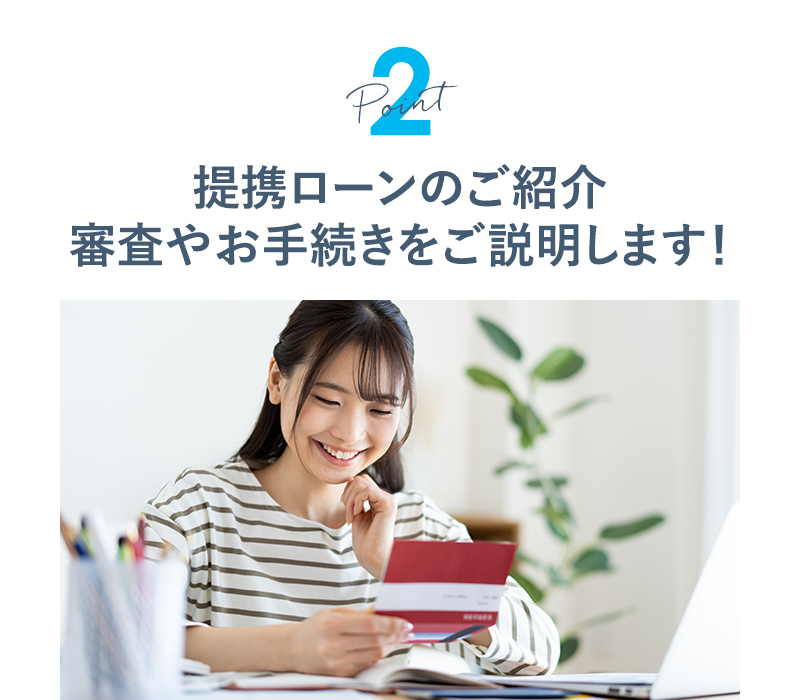 泉州ホームでは、お得な金利の「提携ローン」をご利用いただける他、